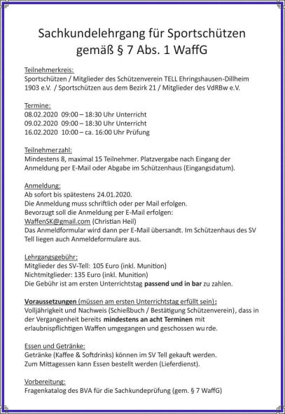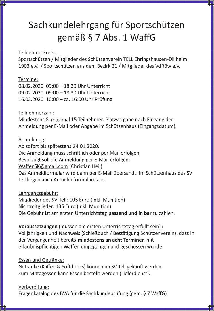 Nächster Lehrgang Frühjahr 2020